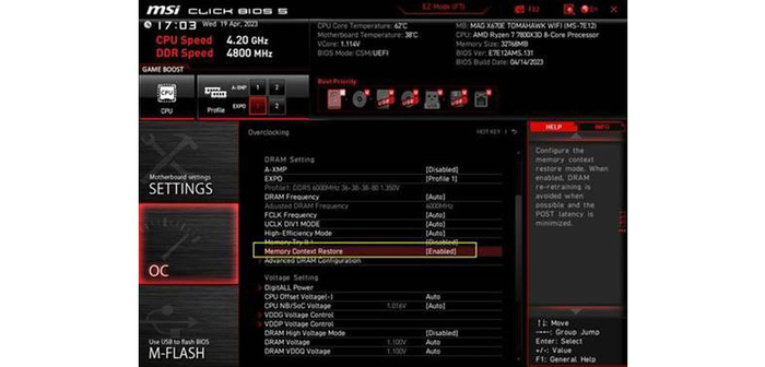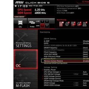 IT之家 4 月 25 日消息,据微星消息,即日起玩家只要在 MSI X670 与 B650 主板,进入 BIOS 中启用“Memory Context Restore”选项,即可加快启动时间,最快可以减少 50% 开机速度。