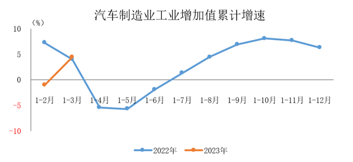 中国汽车工业协会:2023年一季度汽车制造业工业增加值同比增长