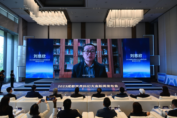在新闻发布会上,刘慈欣也喊出了“共生纪元,你我同在。中国科幻年,从成都出发!”的口号。他认为,成都是一座和科幻关系密切的城市,中国科幻从这里出发,在这里生根发芽。他希望,2023成都世界科幻大会能融入成都独有的科幻粉丝文化,成为文化的聚合体,汇聚中国科幻圈文化和源于1939年的世界科幻大会文化,共生、共建、共创。