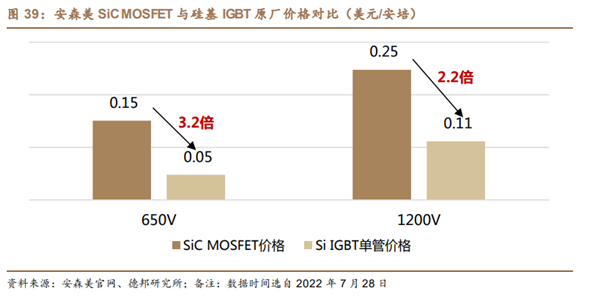 不过好消息是,这几年碳化硅的成本可以说是一降再降,根据德邦证券预计,在 2025 年左右碳化硅的成本会和现在的 IGBT 持平。