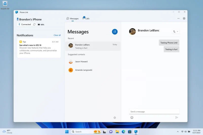 IT之家 4 月 27 日消息,微软今天宣布 Windows 11 Phone Link 应用开始推出对 iPhone 的支持,该公司表示这项功能将在 5 月中旬前向全球所有 Windows 11 用户开放。
