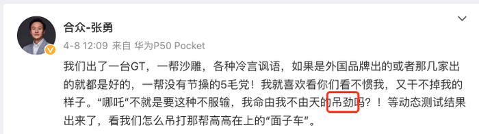 有这八倍闲钱,攒起来或买基挣点买菜钱不香吗。其次,你要有权。这里的“权”体现在两个对内和对外两个维度:第一,对外的路权。当下能买到的两门跑车,绝大部分是燃油车,想把它开上路,尤其是在限牌、限行城市,先得掏一笔不菲的路权购买费;第二,家庭对内的话语权。跑车是典型的“高购买价格、低使用价值”的大宗消费品,空间小,油耗高,底盘低,特娇气,买回家远不如“冰箱彩电大沙发”实用。要说服家里人将宝贵的买车额度放在两门跑车上,需要在家里有“说一不二”这种中国男性普遍缺失的权威。况且,就算另一半同意了,上一辈也未必肯点头。最后,你要有闲。众所周知,跑车是供人类来享受操控机械乐趣的“玩具”,而不是完成简单从A到B移动的“工具”。能感知、体会、消受驾驶乐趣的前提,是有一份足够“闲情逸致”的心态。这意味着,开跑车前,你可以没有能让车在极限边缘反复横跳的“车感”,但必须要有一不留神撞进花坛后还能保持微笑的“松弛感”。这种三维的煎熬,就算“国宝”李佳薇老师都唱不出来。但,现在有一家中国汽车公司,宣布他们只用一台车,就一次性解决了两门跑车上的所有痛点。钱方面,这台两门跑车只要一台丰田凯美瑞的价格就能全款拿下,17.88万元买跑车,让刚开上比亚迪汉的中国人恍若隔世;权方面,纯电车直接挂免费新能源车牌,车内部署了四个独立座位、17.6英寸大屏幕、12扬声器音响,“每个座位都可以是巴赫位”;闲方面,后驱版百公里加速6.5秒,四驱版3.7秒,麋鹿测试80公里/小时朝上,CLTC工况续航最长660公里。可以说是要性能有米其林PS4轮胎,要续航有米其林PS4轮胎,要操控还是有米其林PS4轮胎。这家中国汽车公司就是“为人民造车”的哪吒,这种造车心法叫“用科技平权消除跑车特权”,这台“新物种”就是“200万以内最好的跑车”——哪吒GT。眼瞅着全中国目前仅存唯一的两门四座纯电跑车造出来了,哪吒汽车联合创始人张勇儿时的梦圆了,心里的焦虑消了。但人民的焦虑开始了:本以为打嘴炮不花钱,结果这回真把车企忽悠瘸了,万一人家提那个直击灵魂深处的三连拷问,怎么办?别急,拷问这不就来了,中国人自己的纯电大GT:你买吗,买吗,买吗?矿泉水瓶装自来水?这个问题,在厘清了哪吒GT的诞生背景、产品能力和市场锚点后,很容易回答。纵观中国汽车工业发展史,哪吒不是第一家尝试制造跑车的本土公司,当然也不会是最后一家。燃油车时代,吉利美人豹、中国龙,比亚迪S8,中华酷宝等,都是人民群众喜闻乐见的“中式跑车”。电动车时代,前途K50和零跑S01都试图接过前辈手里的跑车衣钵,遗憾的是,前者中道崩殂,后者笑话百出。