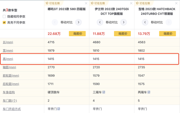 零跑S01烂到什么程度呢,当我们用“工业垃圾”来形容它时,“工业垃圾”四个字本身都变成了工业垃圾。在体量庞巨的家用车市场,中国品牌大杀四方;但在体量小众且对品位有要求的跑车市场,中国品牌一败涂地。按照事物发展的常规逻辑,此刻应该有一位史诗级英雄神兵天降,扛起中华民族汽车工业的跑车大旗。在中国电动车成为全球风向标的时代背景下,每个中国品牌都会产生“这位英雄就是我自己”的错觉。清醒自知的车企,识破了幻境,转头继续去踏踏实实卖家用车,赚钱搞研发。头脑发热的车企,则在家用车业务并没有多强势,研发体系能力不足的情况下,一头扎进幻境自嗨。靠小型车起家的哪吒,就是第一家踏进幻境的“普信厂”,“赶鸭子上架”造出来的所谓“200万以内最好的”跑车,在产品能力上根本禁不起推敲。首先,正经200万跑车是这么设定车身高度的:玛莎拉蒂MC20是1224毫米,阿斯顿·马丁DB11是1290毫米。即便是长期被吐槽不纯粹的保时捷718,也做到了1295毫米。价格更亲民的斯巴鲁BRZ,车身高度为1310毫米。作为一台跑车,哪吒GT的车身高度达到了叹为观止的1415毫米,与纯纯走家用车路线的现代伊兰特和本田型格处于同一水平。然而我们都知道,正统跑车的一大特点是看到减速带就头痛不已的低趴造型。当然,低趴不只是为了造型。跑车降低车身与地面的间隙,是通过减少车辆重心与车辆倾斜中心点距离的方式,来提升车辆的操控极限,减少侧倾程度,使整台车在行驶过程中,可以像吸盘一样紧紧地附着在路面上。操控极限对家用车来说,只存在于饭桌谈资中,可对大马力跑车来说,操控上限直接和车主能不能整个下车划等号,是实打实的安全守门员。