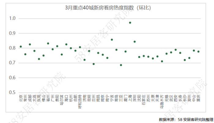 58安居客研究院:2023年3月重点城市房产经纪行业景气度