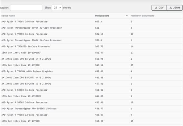 首先是大家耳熟能详的Blender,在3.5.0版本的测试中,其获得总分522.8的成绩,这个成绩相当给力,通过查询官方数据库可以看到,该成绩同样超过了桌面级处理器以及i9-13980HX。从这一点可以看出,它的性能并不比桌面处理器弱。
