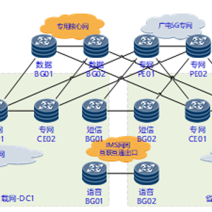 •广电短信网关部署在大区,短信BG采用“口”字型双平面组网接入5G专网PE,部署eBGP协议完成省内与大区间短信网关路由交换,同时部署BFD for BGP加快故障时BGP协议的收敛速度。