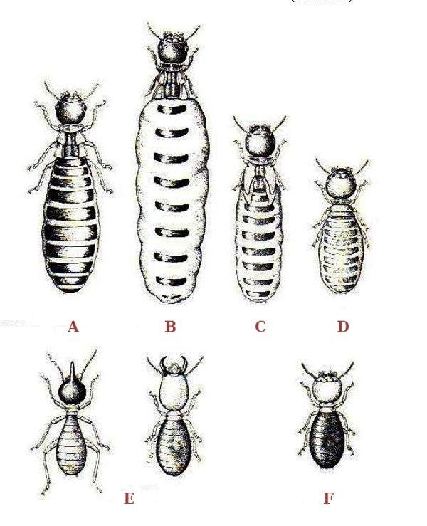 白蚁家族中,蚁后、蚁王、若虫、工蚁和兵蚁,其中只有兵蚁完全不育,其他几种白蚁都有繁殖能力。