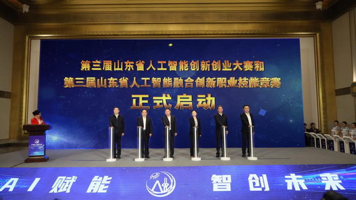 作为本次活动的重要环节,现场还进行了第三届山东省人工智能创新创业大赛和第三届山东省人工智能融合创新职业技能竞赛启动仪式。此外,还举行了山东(济南)人工智能岛建设启动仪式。