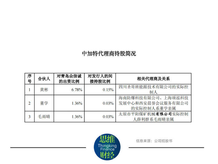 青岛众信诚则是邓克飞表弟窦智控制的公司,其合伙人不乏公司供应商、客户的亲戚等。而黄彬成为青岛众信诚合伙人的原因,公司在招股书中如是表示,为扩大生产经营规模需要也有融资需求,从而接受黄彬于2019年12月通过青岛众信诚间接投资中加特,该次投资系按照中加特投前估值60亿元作价。