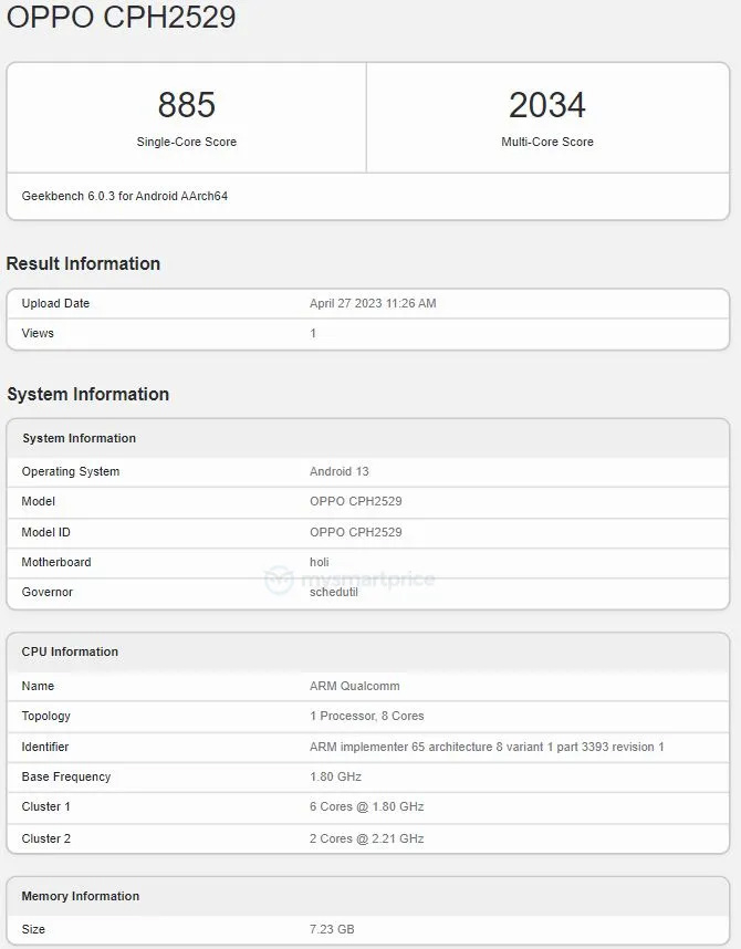 OPPO A98 手机全球版现身 Geekbench:搭载骁龙 695 处理器