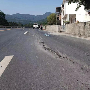 骑摩托经过沉降路段摔倒