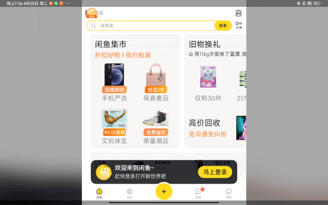无极窗口是有的,但并不是所有软件都有适配,比如闲鱼。