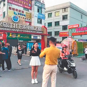 近日,记者来到这里时,就有四五对主播在村口拍视频,“中国义乌江北下朱电商之都”的招牌赫然醒目,旁边就是一整栋的“电商直播基地”,各大店面挂着“工厂直营”“爆品供应链”“欢迎各大主播前来直播”的字眼,直播氛围异常浓厚。