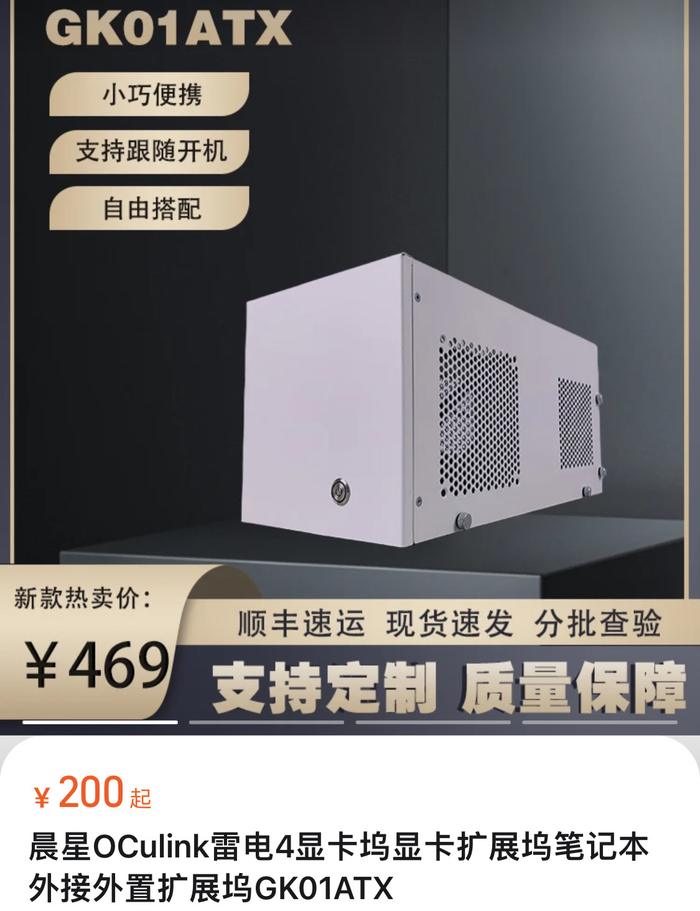 上图中所示的 Oculink 接口可用于外接存储设备和显卡,电商平台已经能搜索到很多 Oculink 显卡坞,其价格往往比雷电显卡坞便宜不少。