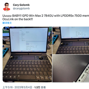 IT之家 5 月 5 日消息,游戏机爱好者 Cary Golomb 曝光了 GPD 新款 Win Max 2 掌机。这款新掌机配备了 AMD 最新的 R7 7840U 处理器,并搭载了 OcuLink 显卡坞接口。