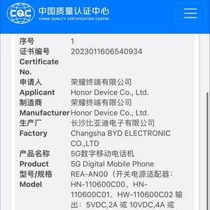 荣耀 90 手机通过国家质量认证,支持 66W 快充