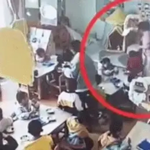 柳先生提供的视频监控显示,3月6日下午4时30分左右,多个孩子都在教室里坐着吃饭。身穿红色衣服的小晨在扭头向后看时,被站在一旁的女子(李某)从座位上提起,随即被摔在地上,疑似背部着地。