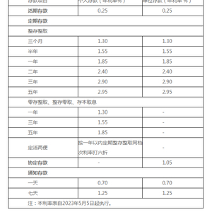 以浙商银行为例,在调整之前,其三年期的整存整取存款年利率为3%,五年期的整存整取存款年利率为3.25%;在调整过后,三年期降至2.9%,五年期降至2.95%。