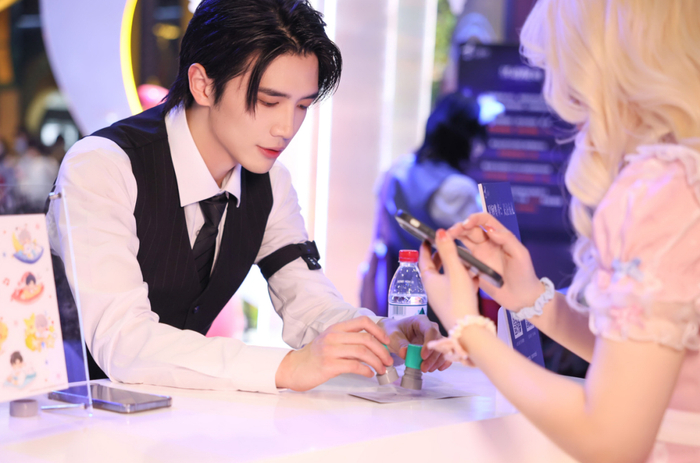 《恋与深空》则是从工作人员入手,他们盖章的小哥从扮相上看和正经coser没什么区别。