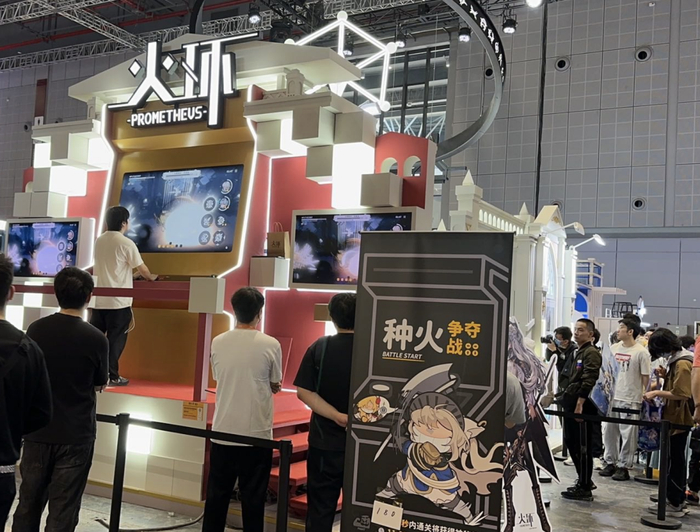 还有些游戏,在网上没有太多讨论,却能在现场排起长队,这让我也感觉自己在某种程度上也是个路人。比如《火环》,在逛到他们的展台之前,我对这游戏的印象不深,只知道这是款像素风格的动作游戏。现场试玩和领取免费周边的长队才让我发现,这游戏原来在taptap已经有近70万预约,有一大批等待其上线的忠实拥趸,试玩下来的打击手感也确实不错。