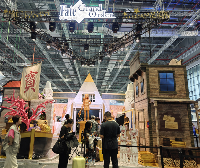 造景同样出色的还有FGO的展台,他们建了个世界公园式的展台,有金字塔,有班扬的雕像,还有西部牛仔的木屋,颇有几分误入异闻带的意味。