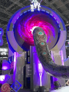 这里还要特别提一下《双界:链接点》,它拥有企业馆中最吸引人眼球的展台——一根硕大无朋的触手从墙壁上蛄蛹出来,在半空中蠕动。在回程的火车上,我发现其参展团队就坐在我的身后。