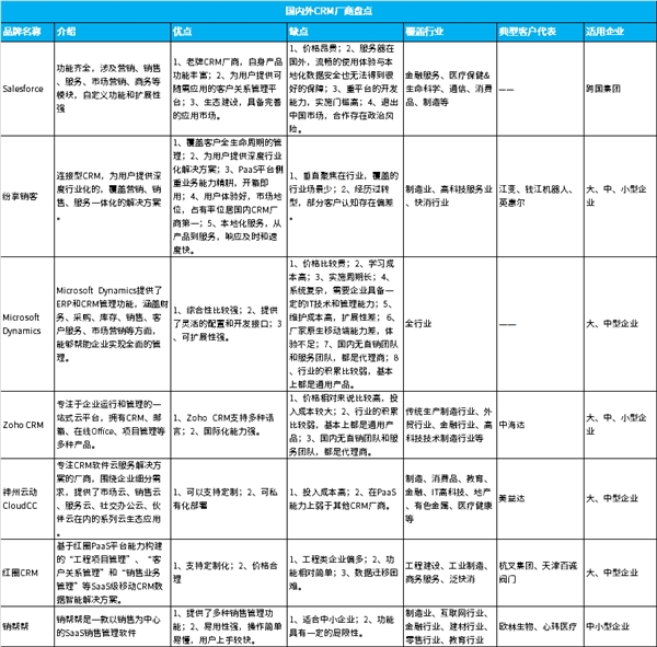 三、CRM厂商对比分析