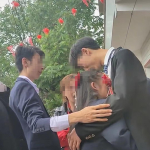 网传视频中,女子嚎啕大哭,现场有另一名女子和一名男子先后抱住并安慰她。疑似视频发布者在回复网友时表示,“女子14岁,被娘家人送到婆家后就哭了,婆婆抱住她说会好好待她。”