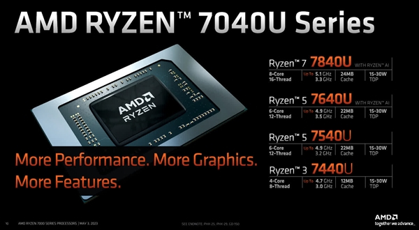 锐龙Z1 Extreme、锐龙7 7840U则都是8核心16线程、8MB二级缓存、16MB三级缓存、12个GPU单元。