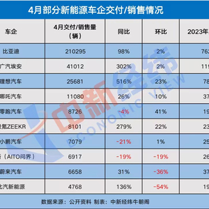 随着价格战的消退,4月的新能源汽车市场稳中有进。中新经纬梳理公开数据发现,多家车企4月在销售端实现同环比双增长。