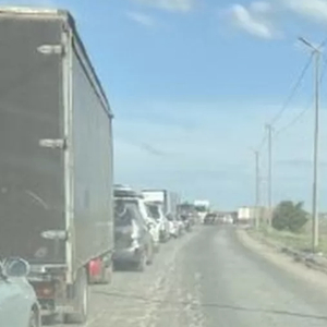 ↑扎波罗热核电站附近,撤离的居民驾驶汽车排起了长队