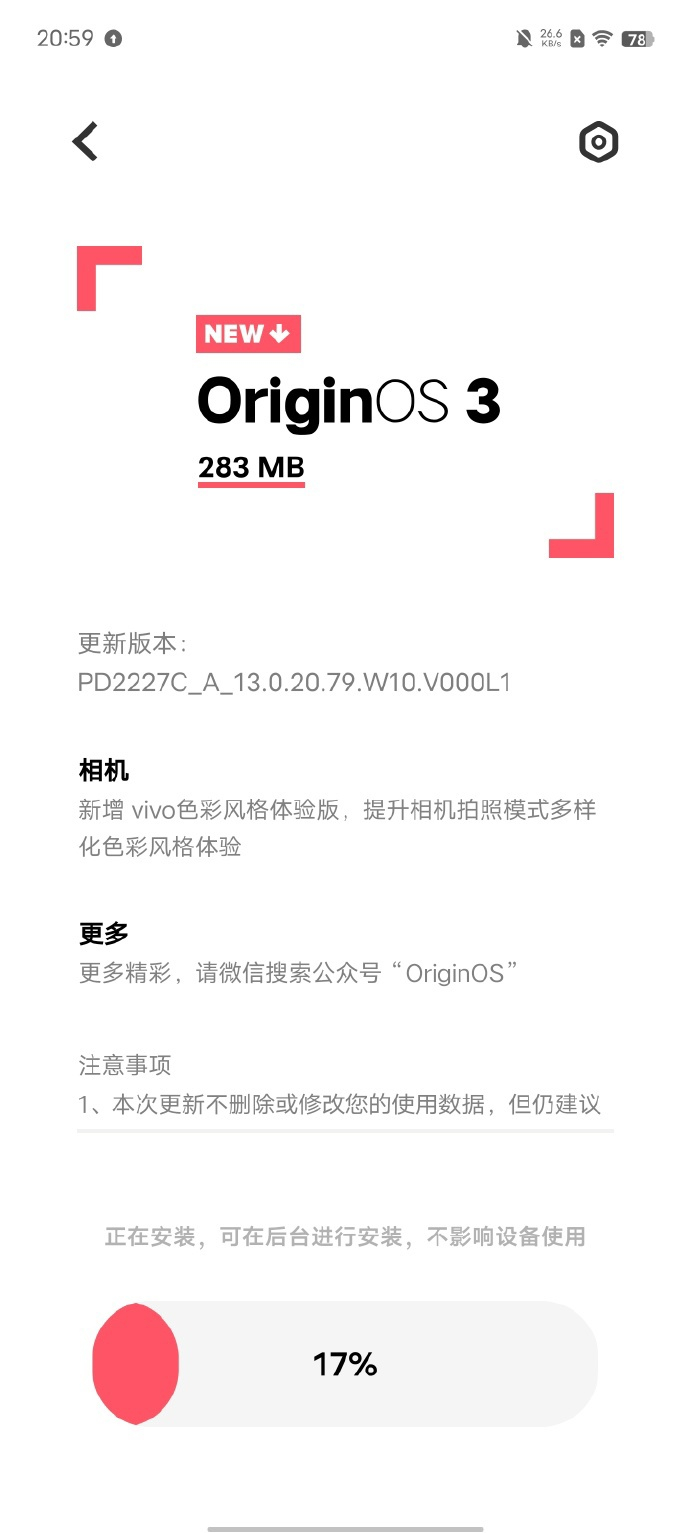 IT之家 5 月 9 日消息,数码博主“i 冰宇宙”微博晒出的图片显示,vivo X90 Pro + 内部测试版推送 OriginOS 3 新版本更新,版本号 PD2227C_A_13.0.20.79.W10.V00L1,下载包大小 283MB,新增了第三种色彩风格:Demo X。