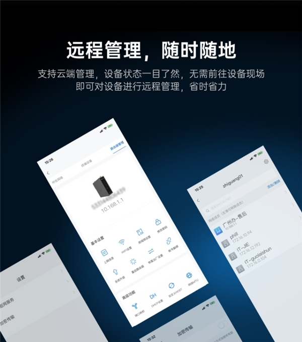 在运维管理方面,该企业选择的贝锐蒲公英软硬结合的部署方式支持本地/云端维护,不仅不需要企业配置专业人员对设备进行维护,只需使用贝锐蒲公英APP/网页端管理平台,即可对档案中心、总部所有的组网设备进行统一管理,远程维护简单高效。