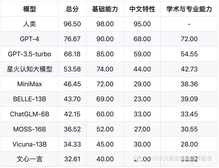 中文通用大模型基准测试 SuperCLUE 发布,讯飞星火认知大模型国内第一