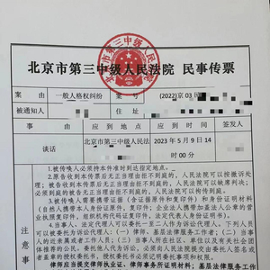 ↑北京市第三中级人民法院民事传票