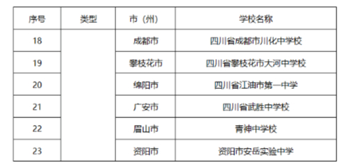 特色型——电子科技大学实验中学、四川省双流艺体中学、四川省成都市航天中学校、四川省成都市川化中学校。