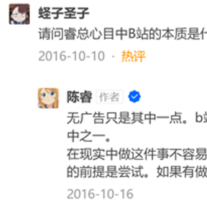 据一些曾在B站工作的朋友说,当时的陈睿基本按照美国时间上班,通常会在晚上九十点来到办公室,然后呆到早上七八点。他会在办公室的电脑前回复这些回答下的评论,许多留言者曾在凌晨四五点收到过陈睿的回复,我也是其中之一。