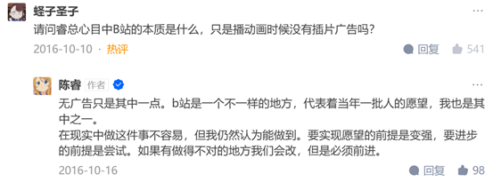 时间回到2016年,此时距离B站上市还有差不多半年,董事长陈睿还会在知乎上“以心交心”,与他想象中的“B站用户”进行交流,并留下了知名的“b站未来有可能会倒闭,但绝不会变质”。
