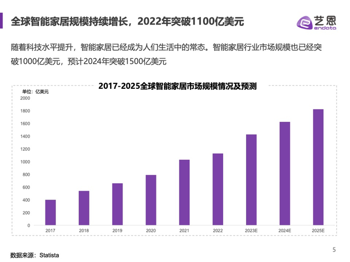 全球智能家居规模持续增长,2022年突破1100亿美元