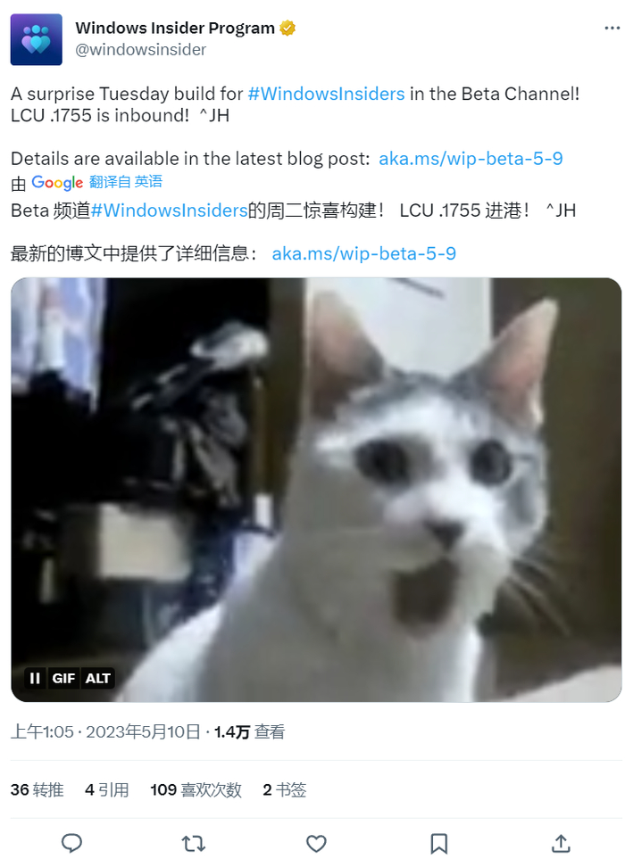 IT之家 5 月 10 日消息,微软很罕见地在周二(正常是美国周三)向 Beta 频道推送了最新的 Windows 11 Insider 版本,版本号升至 22621.1755 和 22624.1755,不过这两个版本都不包含新功能,因此更新相对较小。