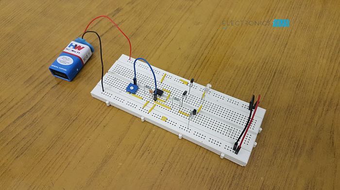 10KΩ电位器用于调整555定时器的频率。通过IR-LED的电流被限制在100mA,因为有两个1N4148二极管,当这些二极管与晶体管和电阻结合时,形成了恒定的电流排列。