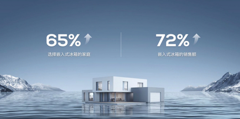 现如今,薄嵌冰箱凭借零缝隙无缝嵌入橱柜,成为打造一体化厨房场景的主流趋势。相关数据显示,刚刚过去的2022年,搜索并购买“薄嵌”冰箱的家庭数量同比增长了65%,“薄嵌”冰箱的销售额占整个家用冰箱行业的34%,同比增长了72%。