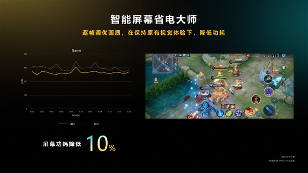 对手游玩家来说,最关心的无疑是游戏功耗和卡顿问题了,在天玑9200+上,通过联发科独家MAGT(游戏自适应调控技术)技术,能让游戏与平台配合有效调度系统资源,降低功耗提升续航,根据官方介绍,导入MAGT能让功耗最多降低12%。