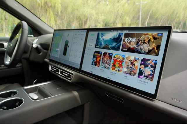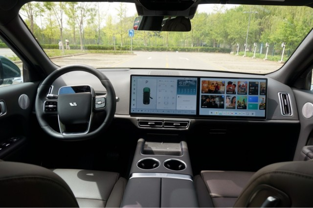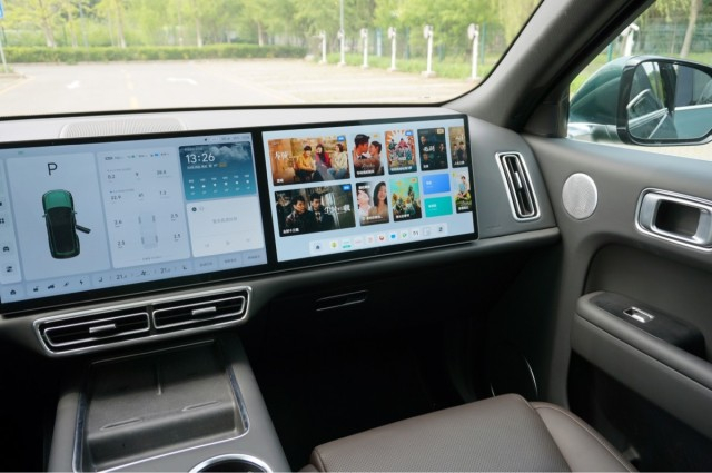进入到车内,给人的第一感觉的就是智能化,特别是中控台上的两块15.7英寸屏幕特别抢眼。除了尺寸大以外,这两块屏幕的分辨率也达到了3K级别,显示效果也是非常不错。