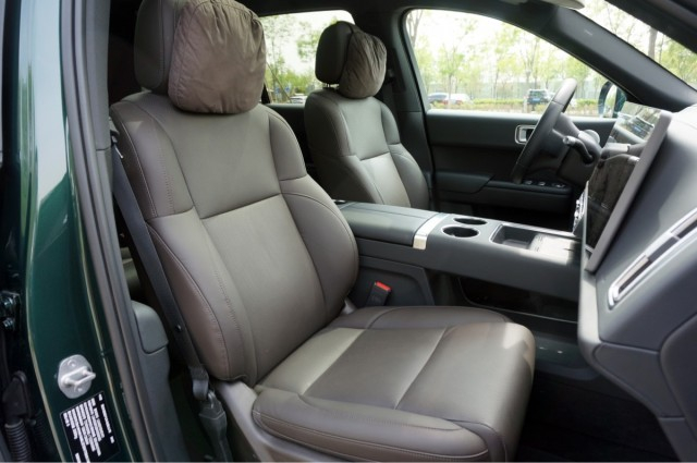 前排座椅采用了真皮包裹,质感非常出色,并且坐起来也非常舒适,软硬度比较适中,对身体的侧向支持也十分到位。座椅头枕区域还配备了非常柔软的头部靠枕,靠上去是很舒服的。功能性方面,前排座椅支持多向的调节,并且还拥有通风、加热和按摩的功能。