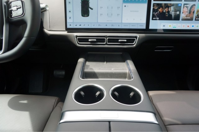 在座椅前方位置是后排空调面板,并集成了杯架和储物格,内部设置有两个60W的Type-C接口,支持给移动设备充电和链接Switch游戏机。
