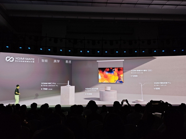 最后,极米发布了一系列投影配件产品,包括售价1099元的极米影院无线音箱,可以通过蓝牙和极米投影组合多声道(一个、两个、四个均可);售价1299元的智能光子幕布,可以联动投影开启启动;售价799元的极米智能无线麦克风Pro;以及699元的落地支架Pro。