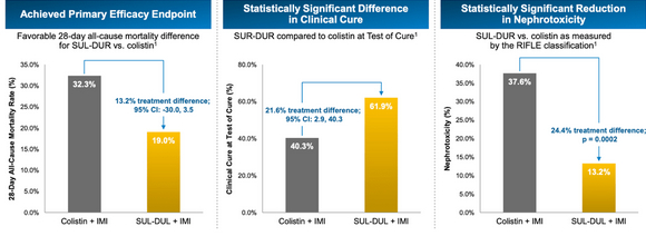 ATTACK试验的结果显示,与标准治疗的粘菌素治疗相比,经suld治疗的患者死亡率更低,肾毒性更小。此外,2022年10月提交的额外数据加强了该试验的安全性和有效性结果。