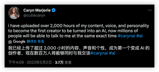 从周二开始,Caryn AI将正式扩大测试范围,开放给更多的用户。
