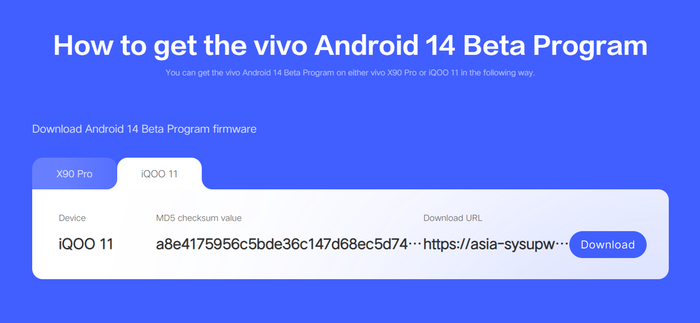iQOO 11 和 vivo X90 Pro 手机首批适配 Android 14 Beta 版系统,升级包开放下载